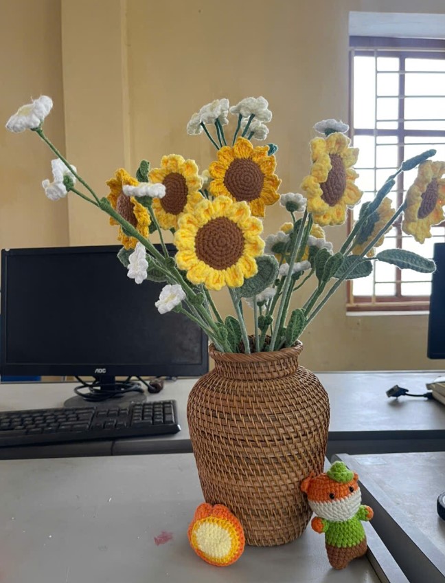 Hoa hướng dương bằng len mang vẻ đẹp rực rỡ nhưng dịu dàng – bền vững theo thời gian, không cần chăm sóc